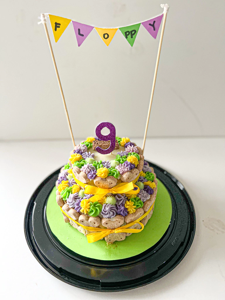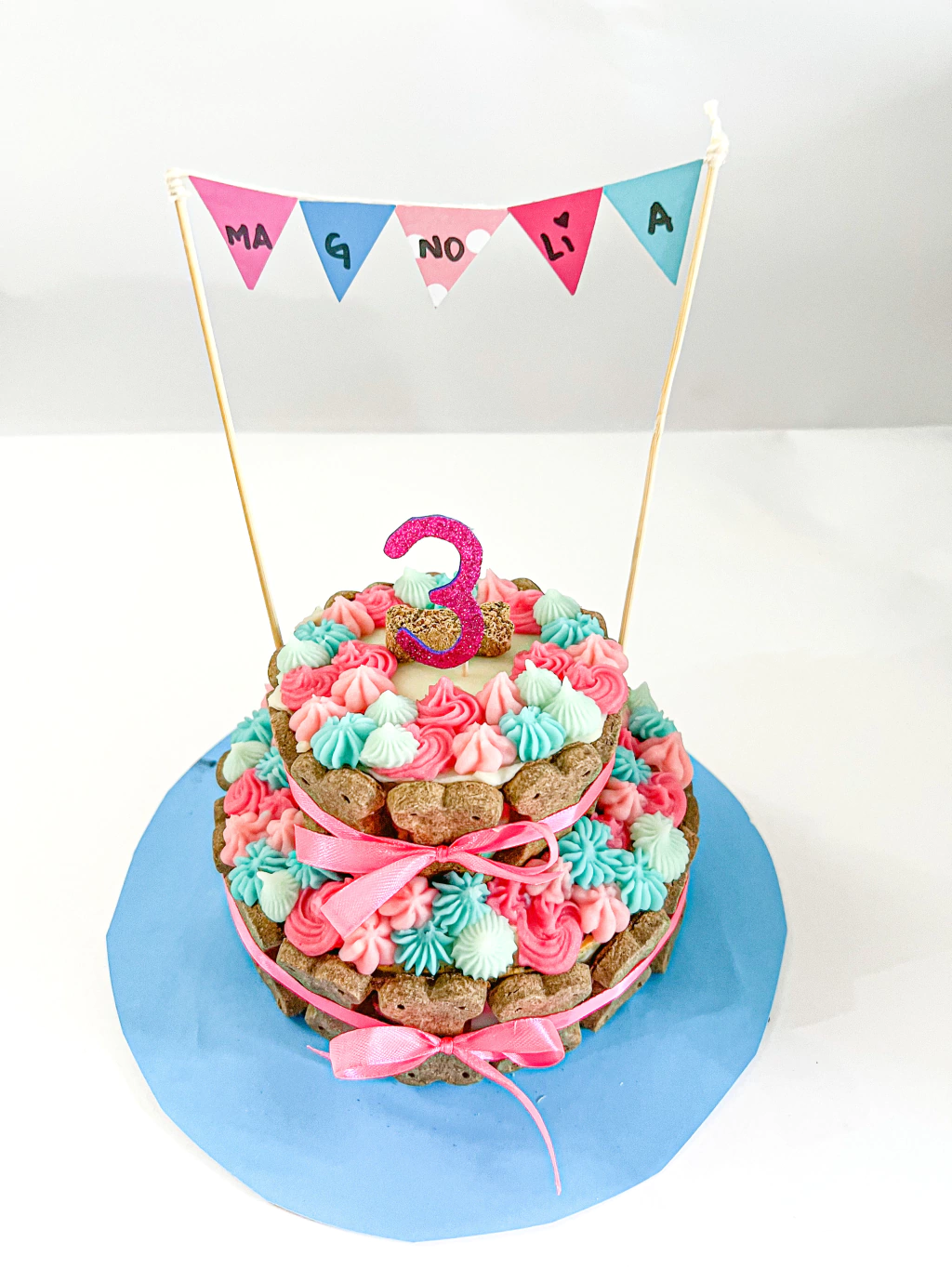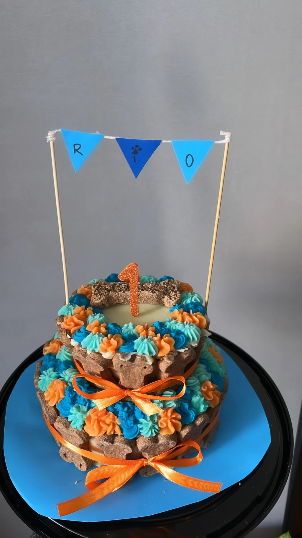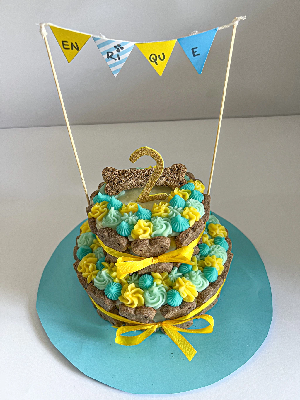 Esta Torta pesa 1,500kg aproximadamente entre 7-9 porciones mide 16cm de alto. (esta formada por torta huesito mediana y huesito mini) decorada con galletitas alrededor.