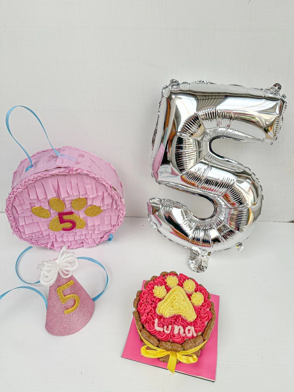 1 piñata de 20 cm rellena con 100gr de gomitas para perros (Sabor queso&pollo) unicas disponibles.