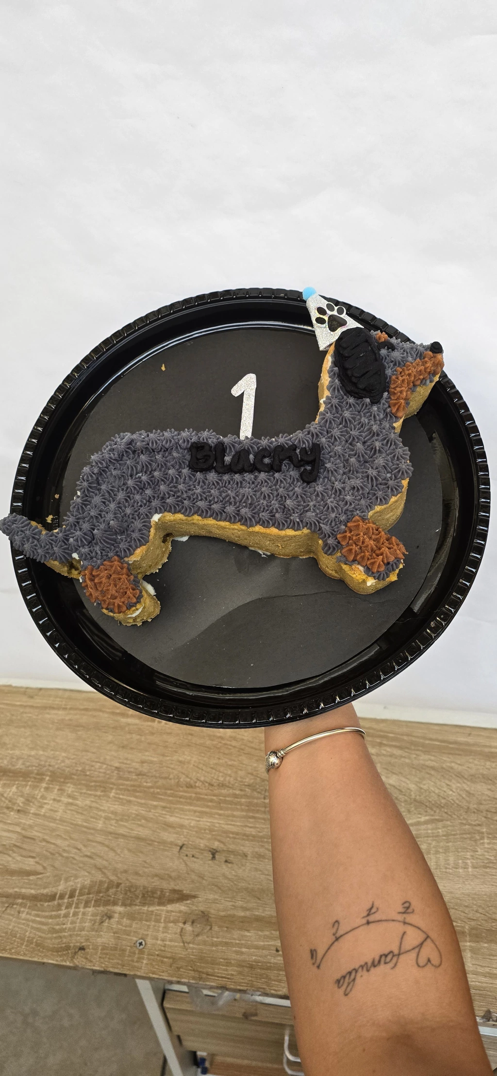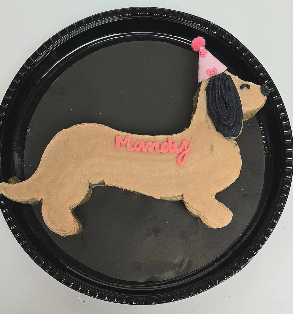 puedes elegir de que color hacer el perrito segun como sea el tuyo. (blanco, negro, cafe, manchado etc) debes dejarlo escrito junto a sus datos, (si no se hara cafe) incluye un gorrito con diseño segun la disponibilidad/combinacion y su nombre escrito, mas un numero que correspona a la edad que cumple.